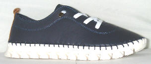 ^ Lunar FLE 030 'St Ives' navy leather N.B. neat for length elastic lace SIZES 37,39 £34.99 |